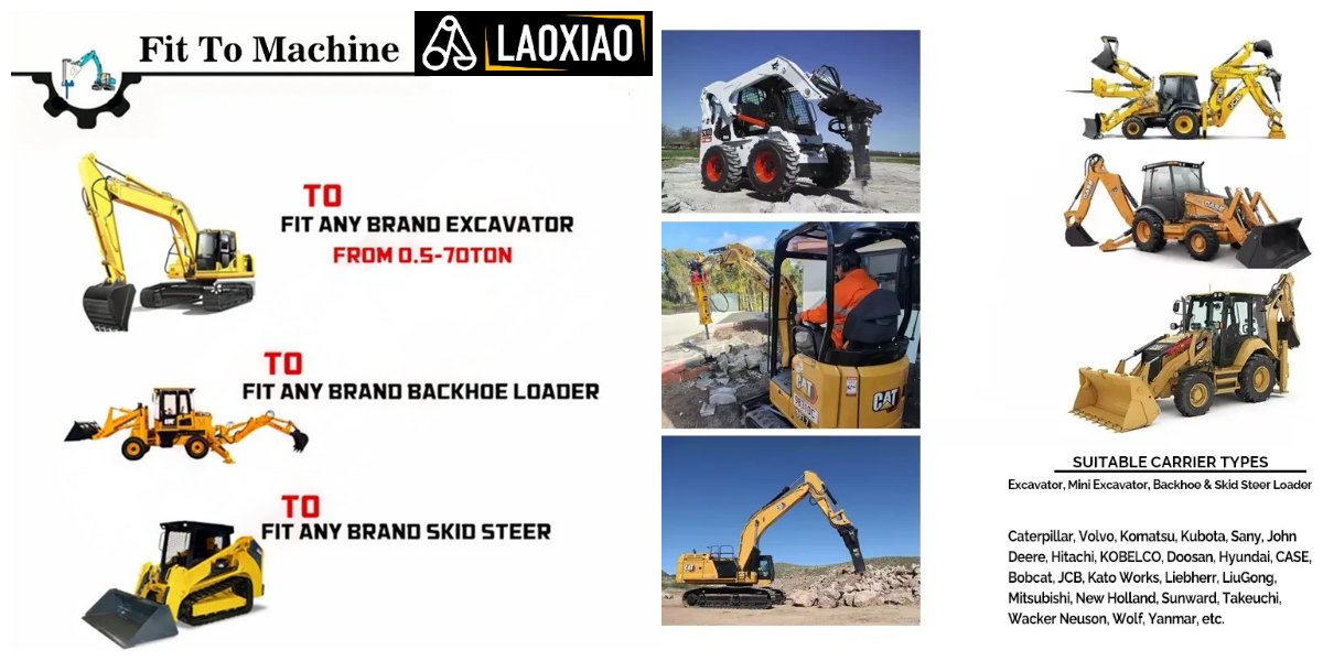 * Гидромолот подходит для экскаваторов любой марки грузоподъемностью 0,5-70 тонн.